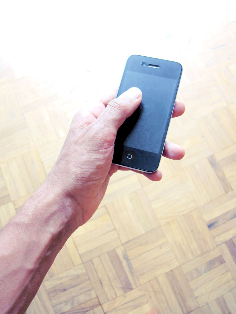 OK: Formally, why did you choose the iPhone as the platform for your subjects and the medium of photography to document it? Also, the scenario that you present between the two men in your narrative could have been expressed in a variety of ways; why did you choose the Grindr iPhone application?
